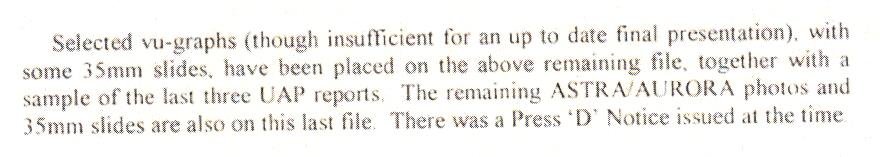 FROM 2006 I made a series of FOI requests to MoD for documents relating to the Aurora mystery but avoided explicit references to the Calvine photographs. My requests brought to light a cache of documents dating from 1992 that originated from the British Defence Staff in Washington DC addressed to MoD London.