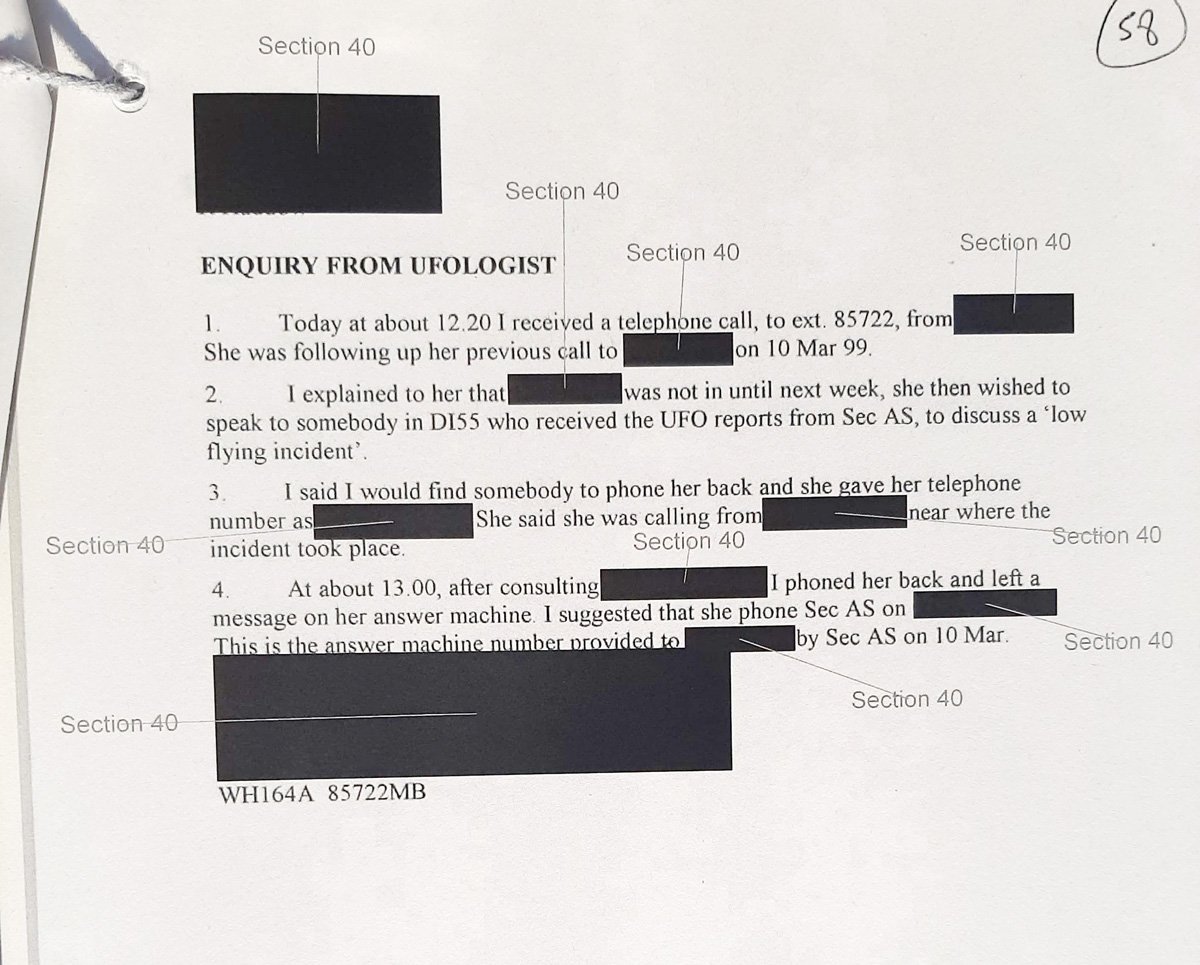 It is clear from the surviving transcript (above) that Haddow was not happy. ‘Someone has given our (my) name and number,’ he wrote. ‘This could raise awkward questions since [the UFO desk] not long ago denied publicly that any work was going on. UFOlogists know about DI55 because of the [National Archives] and subsequent TV leaks…at best the name and telephone number will be throughout the UK ufologists in a matter of days’. And he adds: ‘at worst the press could get hold of it!...Any disparity in future responses will be seen by the UFO community as a “sensitive” cover up and only serve (in their eyes) as confirmation’.